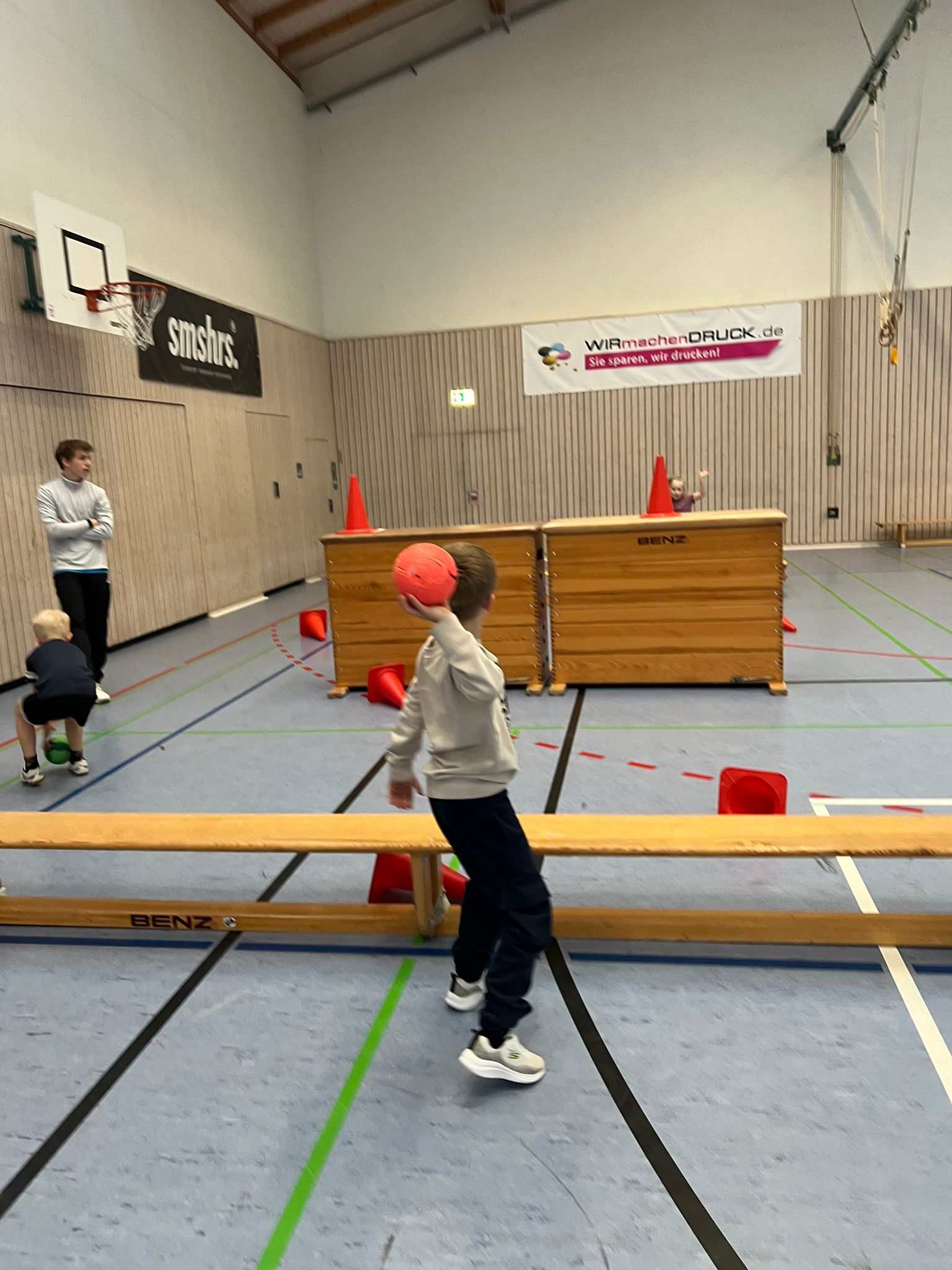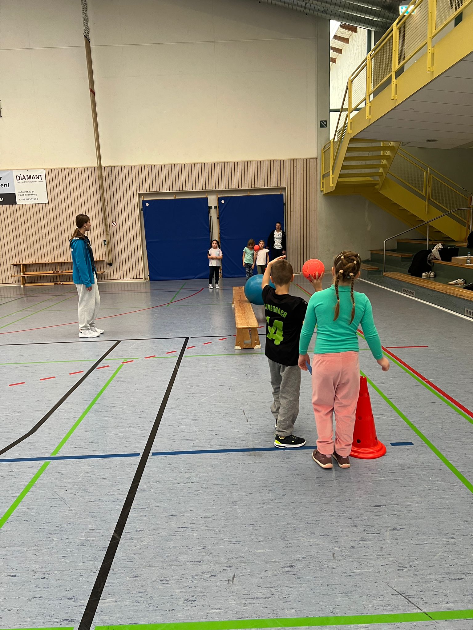 Um 8:30 Uhr trafen die Klassen 2a und 2b der Grundschule Unterbrüden in der Halle ein und der Grundschulaktionstag konnte beginnen. Nach zwei kurzen Aufwärmspielen konnten sich die Kinder in Gruppen einteilen.
