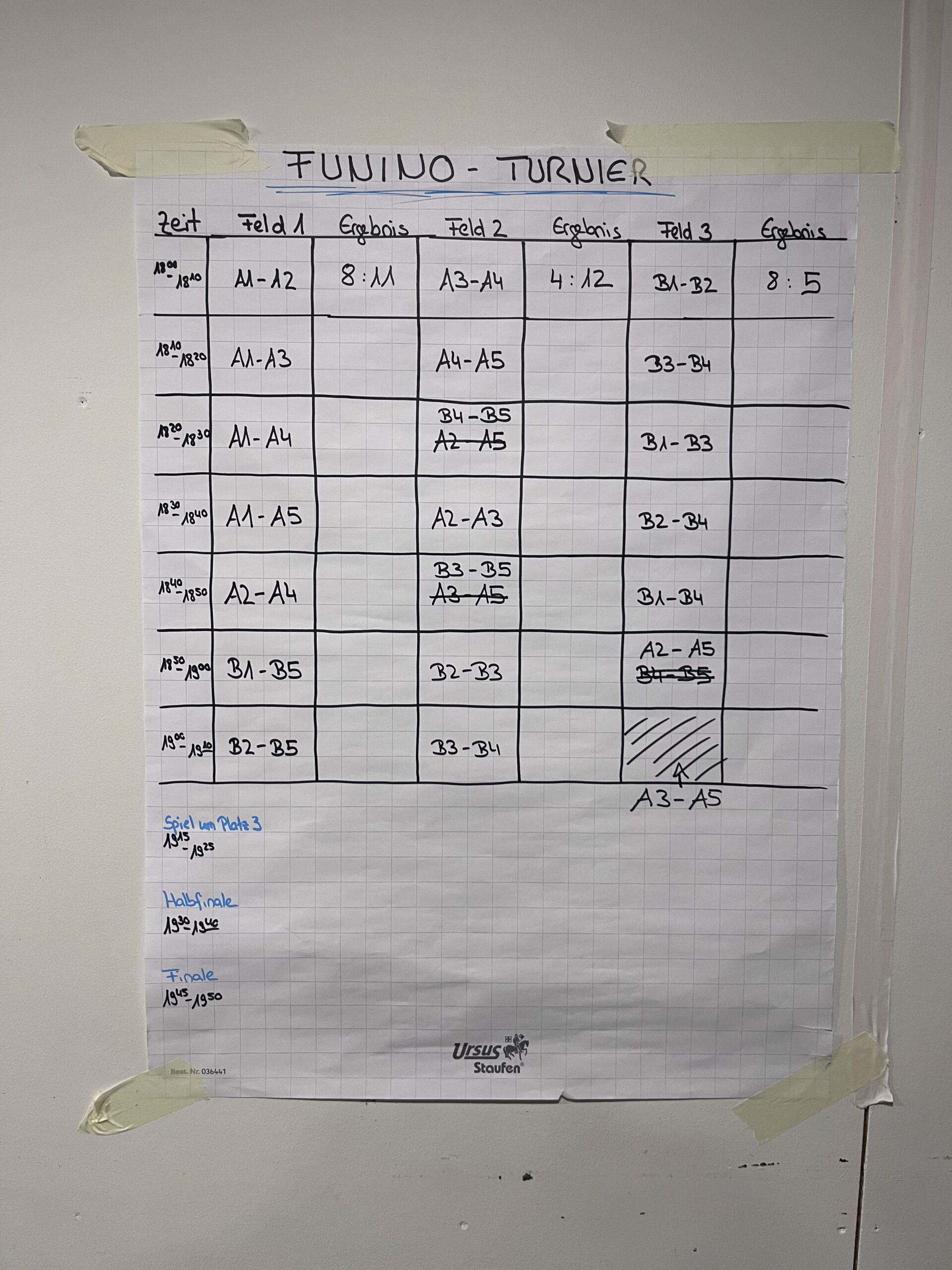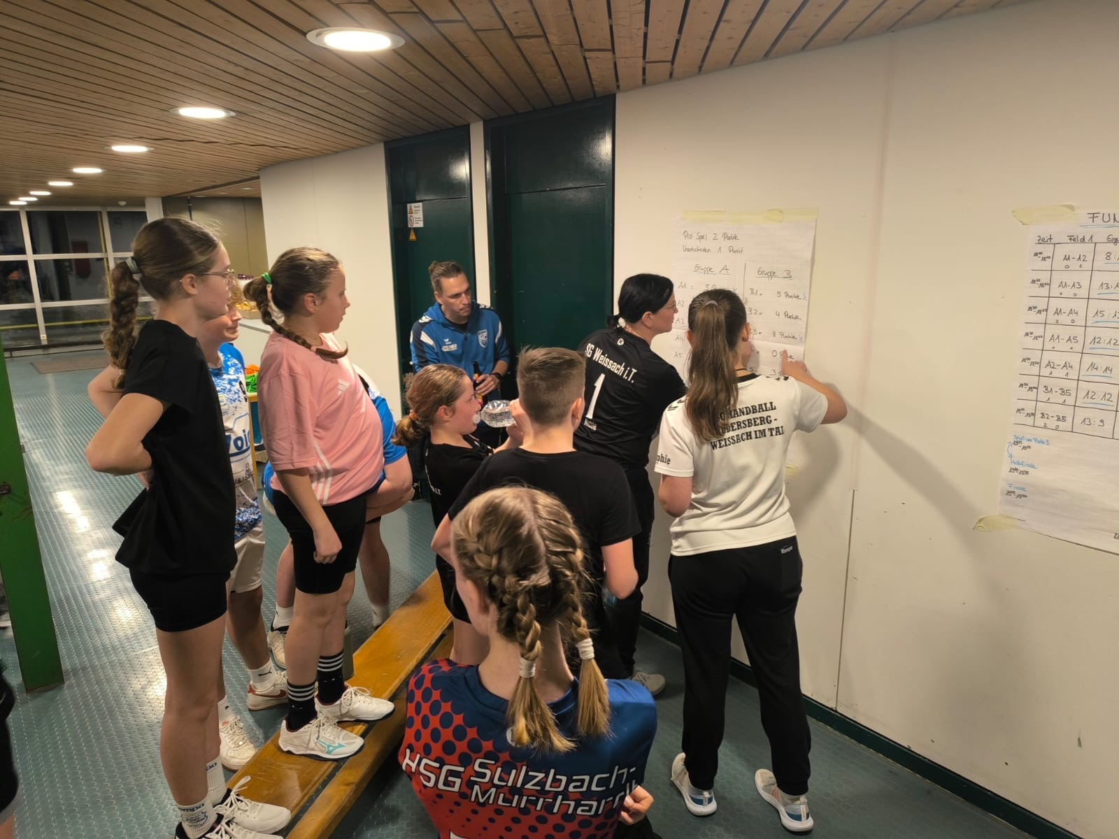 Ab 17 Uhr waren dann die älteren Jugendmannschaften von der D-Jugend bis zur B-Jugend an der Reihe. Für sie stand ein Funino-Turnier auf dem Programm. Die Jugendlichen wurden in zehn Mannschaften eingeteilt und spielten ihre Gruppenspiele auf drei Feldern aus. Danach folgten die Halbfinalspiele, das Spiel um Platz 3 sowie das spannende Finale. Dieses endete unentschieden, sodass die Entscheidung im 7-Meter-Werfen fallen musste. Am Ende setzte sich das Team „Die Reasons“ (Nick, Luca, Maja M., Louis und Noah) durch.