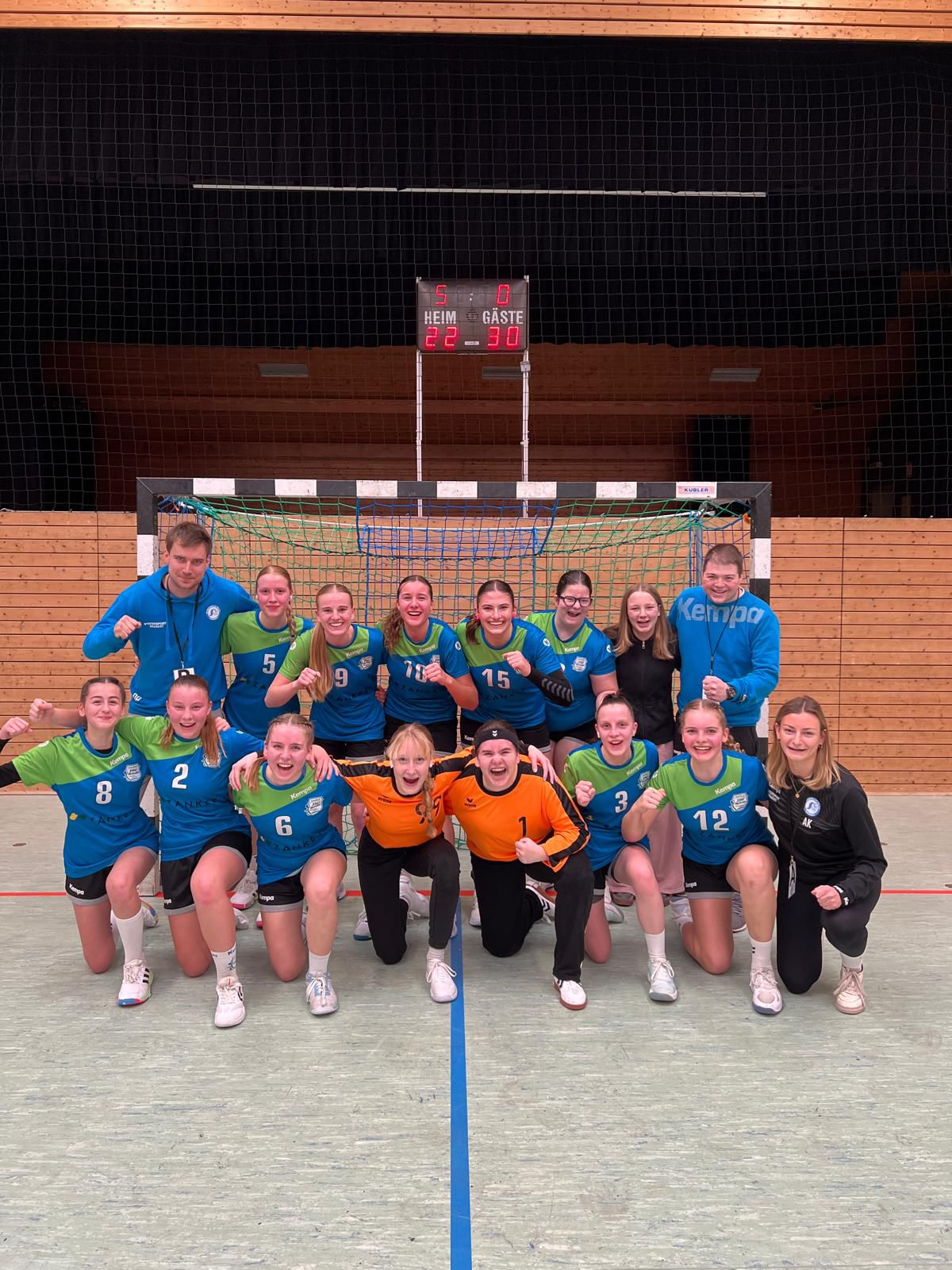 Zum Jahresauftakt 2026 ging es dann auswärts nach Welzheim. Die Winterpause war vor allem in der ersten Halbzeit deutlich zu spüren. Viele technische Fehler und zahlreiche vergebene Chancen gegen eine sehr starke gegnerische Torhüterin führten lediglich zu einer knappen Drei-Tore-Führung zur Pause. Nach dem Seitenwechsel präsentierte sich das Team jedoch deutlich verbessert. Aus einer stabilen Abwehr mit nur fünf Gegentoren in der zweiten Halbzeit heraus konnte das Tempospiel konsequent aufgezogen werden, sodass am Ende ein souveräner 32:18-Sieg gefeiert werden durfte – begünstigt auch durch die eingeschränkten Wechselmöglichkeiten der Welzheimer Mannschaft.